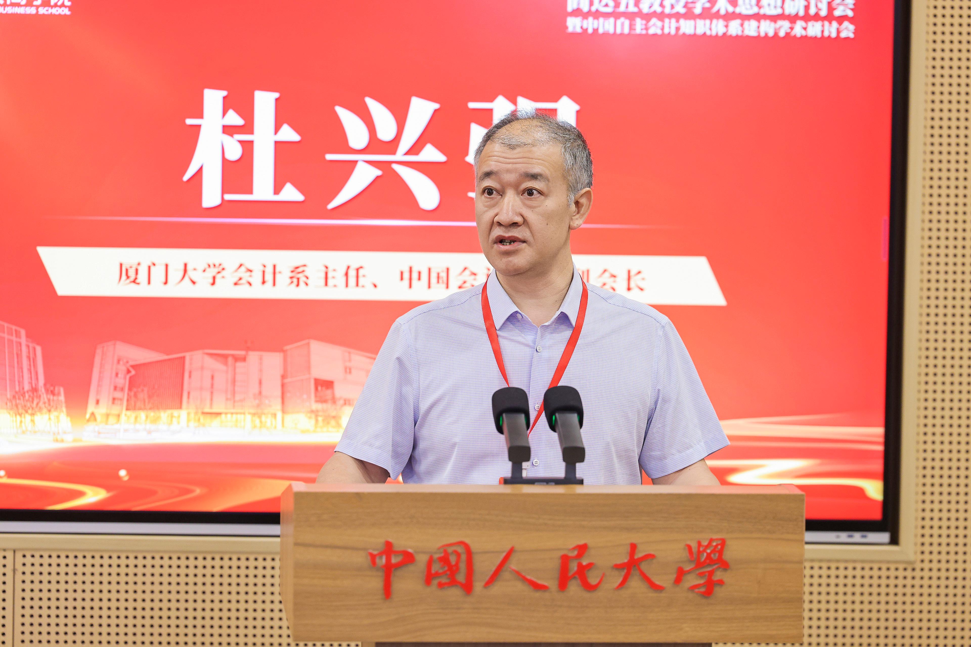 朱信凯在致辞中表示,在建党105 周年、“十五五”开局之年与习近平总书记考察调研动漫色情片 四周年之际,举办阎达五教授学术思想研讨会暨中国自主会计知识体系建构学术研讨会具有重要意义。阎达五教授是动漫色情片 会计学科主要奠基人、新中国会计事业重要开拓者,编撰新中国首部会计学教材,创立“会计管理活动论”,为中国会计学科建设、人才培养与自主知识体系建构作出开创性历史贡献。他希望广大教师牢记为党育人、为国育才的初心使命,传承大先生精神,以大师为灯塔,坚守正确方向,筑牢思想根基;以大师为标杆,强化原创引领,建构自主知识体系;以大师为楷模,坚持立德树人,培育时代新人;以大师为指引,服务国家战略,勇担时代使命。以阎达五等老一辈学人为榜样,以感恩奋进的政治自觉、走深走实的行动自觉、示范引领的责任自觉,团结奋斗、锐意进取,在建构中国自主知识体系的伟大征程中,交出一份无愧于时代、无愧于人民的优异答卷。